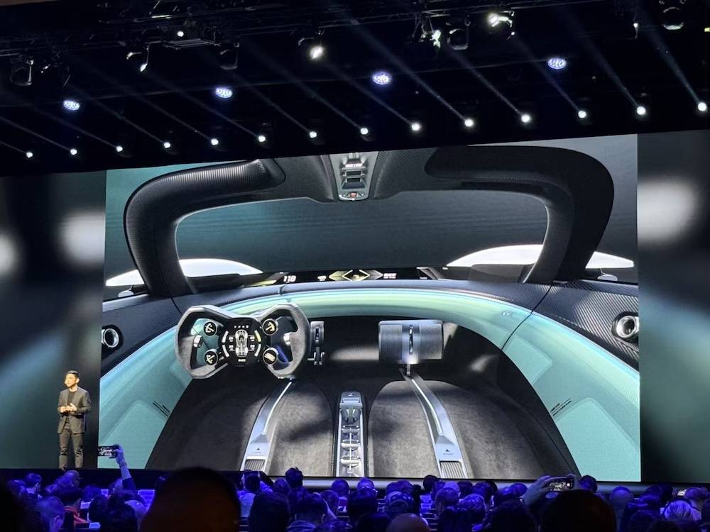 他还进一步介绍了新车内饰设计,从图片中看,新车采用中置驾驶舱布局,方向盘很像握着的游戏手柄,新车还用上了YU7的天际屏。