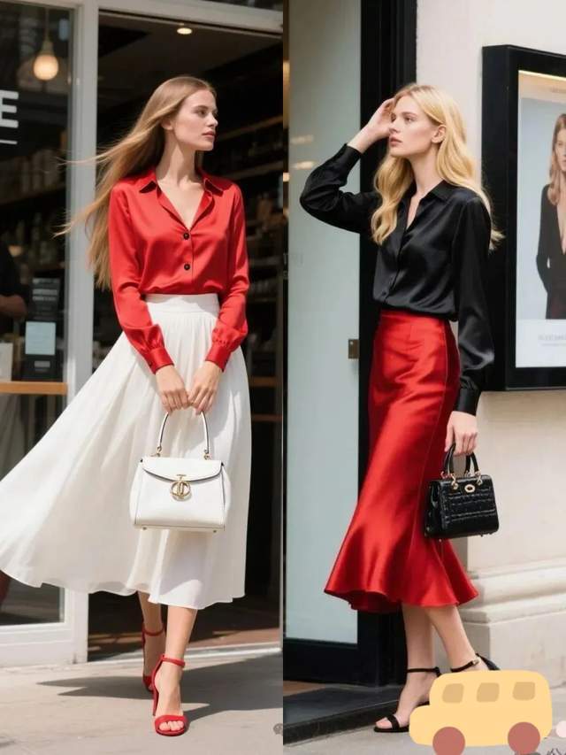 若是自己喜欢更喜庆的穿衣风格,不妨可以选择红色的衬衫,搭配上白色的伞裙,脚踩红色高跟单鞋,和衬衫形成色彩呼应,找到了一个平衡点。。