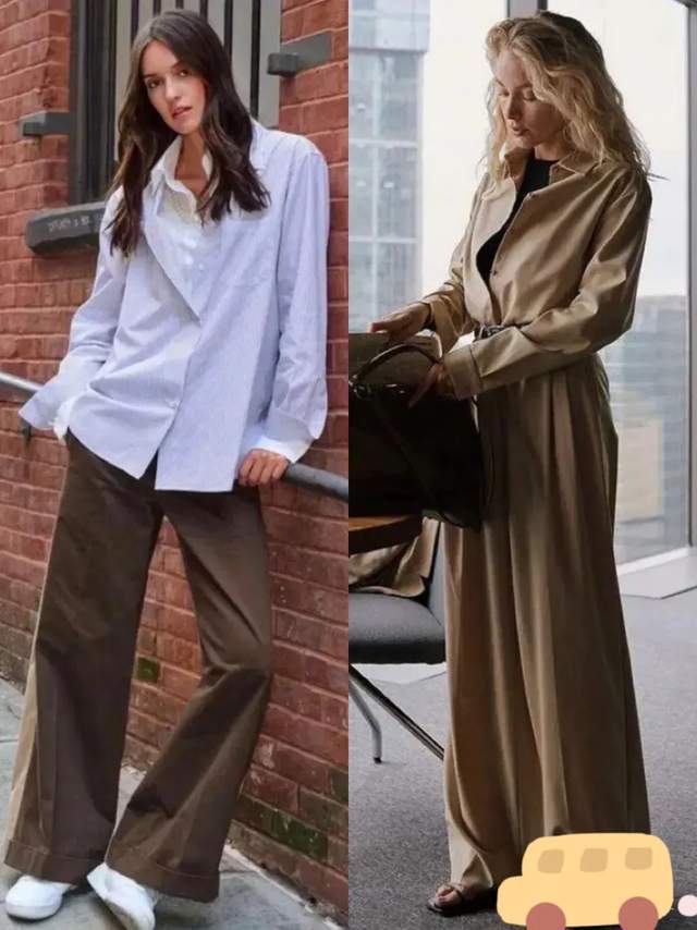 或是直接选择美拉德色系的衬衫,内搭一件黑色的针织打底衫,配上同色系的西装阔腿裤。这样的穿搭既干练又慵懒。