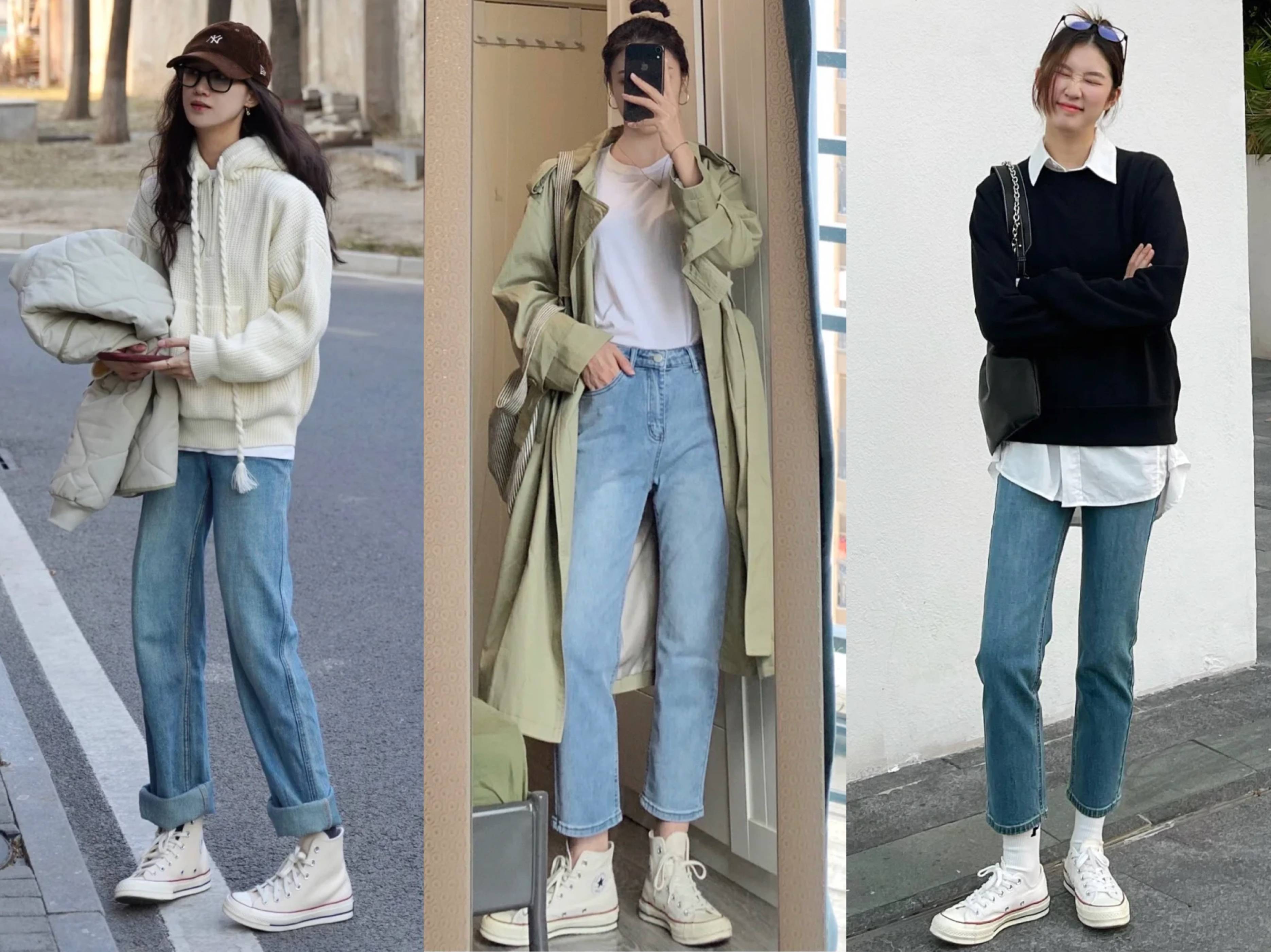 无论是牛仔阔腿裤,还是牛仔直筒裤,都能与帆布鞋组合出时髦耐看的造型,半身搭配帆布鞋也是非常不错的选择,还可以选择九分裤搭配白色帆布短靴,非常的修饰腿型哦!