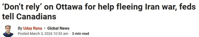 随着美国和以色列与伊朗之间的战争升级,加拿大政府正提醒身处中东地区的加拿大人制定离境计划,“不要依赖”加拿大政府的协助。