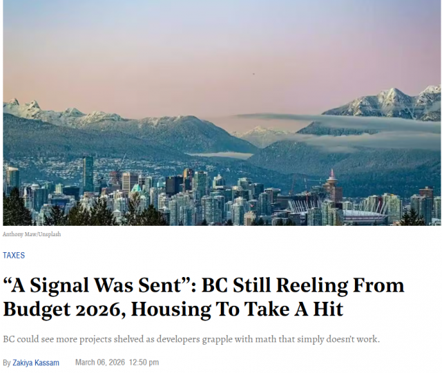 BC省2026年预算公布后,市场反应仍在持续消化中。开发商和商业组织指出,预算缺乏鼓励急需住房开发的措施,同时引入的税收政策可能进一步阻碍市场发展。