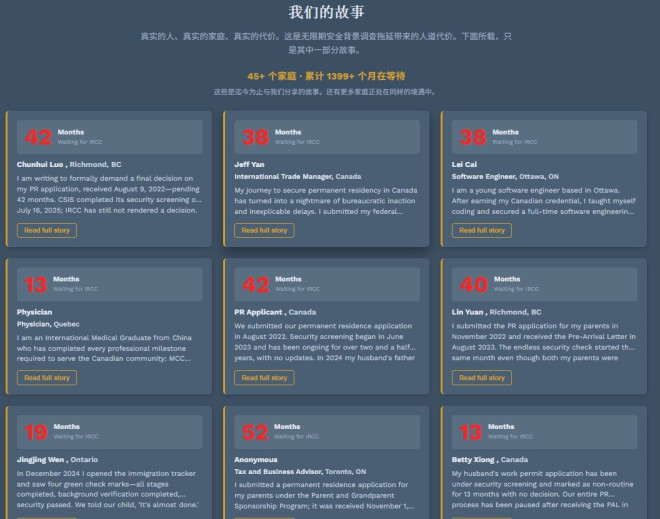 组织者发布的《公正宣言》指出,目前许多申请人的安全审查等待时间已经长达 30至40个月甚至更久,远远超过 Immigration, Refugees and Citizenship Canada(IRCC)公布的服务标准。