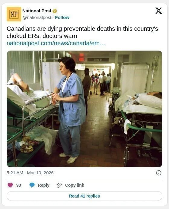 同时,加拿大各地的急诊室普遍超过100%运力运作,后台的30至40张担架和诊室被“已评估并入院”的患者占据,但病房无空床可供转移,因为许多床位被已无急需的患者占用,长期护理或居家康复资源不足。与此同时,急诊候诊区可能有50人以上等待。