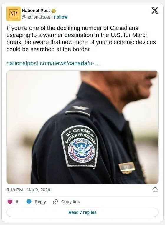 加拿大边境服务局(CBSA)也可对电子设备进行检查,但过去八年的数据表明,检查频率远低于美国。