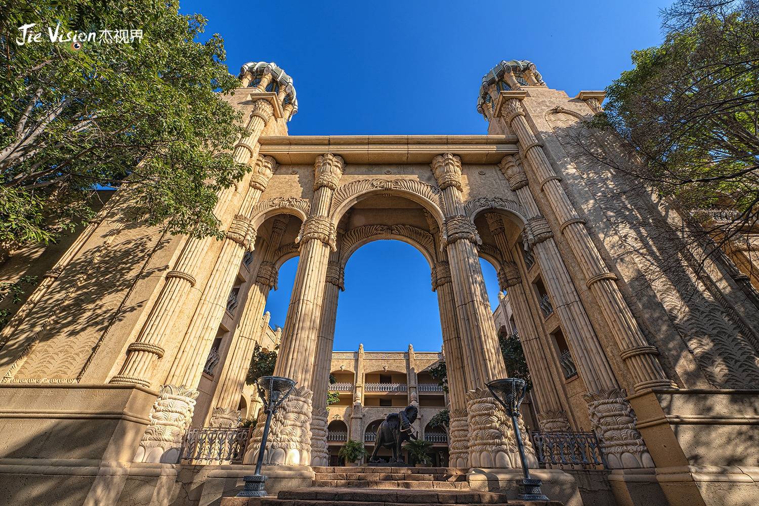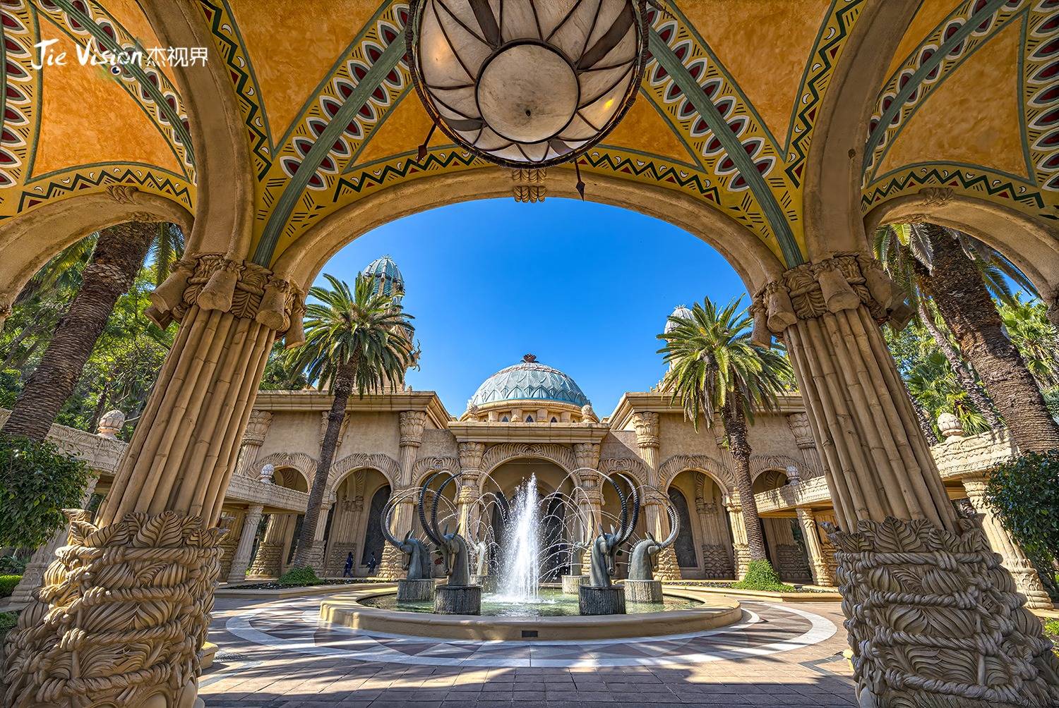 但索尔·科斯纳异常坚定。他不仅投入了巨额资金,还动用了大量人力物力,从世界各地运来建筑材料、树木花草,甚至不惜重金邀请美国著名的WATG设计公司,以非洲古老的“失落之城”传说为蓝本,打造这座梦幻之城。传说在远古时期,中非的游牧民族在太阳谷建造了一座文明高度发达的城市,后来因为地震和火山爆发,这座城市被熔浆掩埋,成为传说中的“失落之城”。索尔·科斯纳的构想,就是让这座传说中的城市在现实中重现。