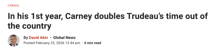 Global News 对 Carney 与前总理 Stephen Harper 和 Justin Trudeau 的行程进行分析后发现,Carney 的出访频率高于两位前任。这反映出他在去年春季大选期间所作出的承诺——推动加拿大贸易与安全关系多元化,减少对美国的依赖。