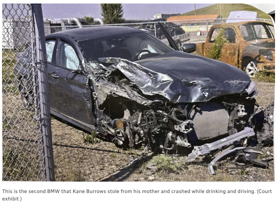 根据法庭披露的案情,在 2024年12月到2025年8月 的八个月时间里,Burrows两次偷走母亲的宝马汽车并酒后驾驶。