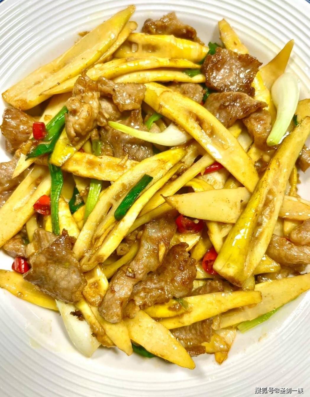 1. 春笋去皮洗净,切成丝,焯水备用。