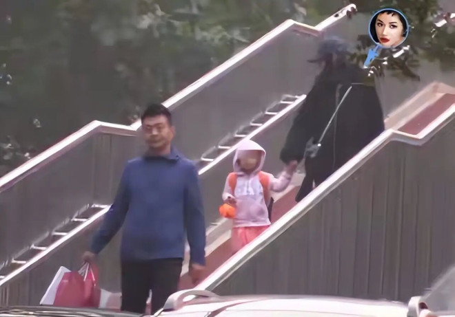瞿颖陪着男士一起接女儿,还牵着小女孩的手、表现的非常亲密。