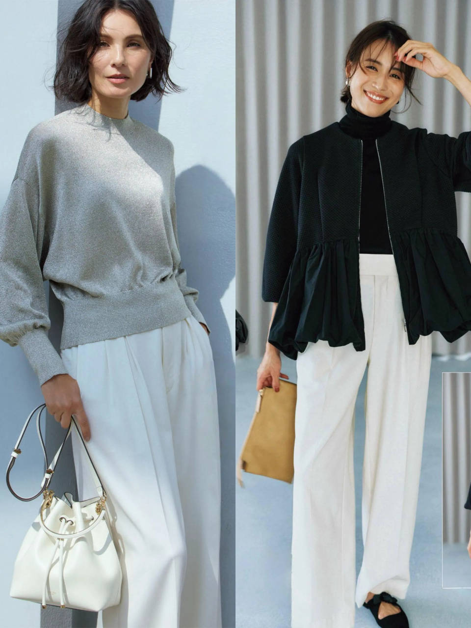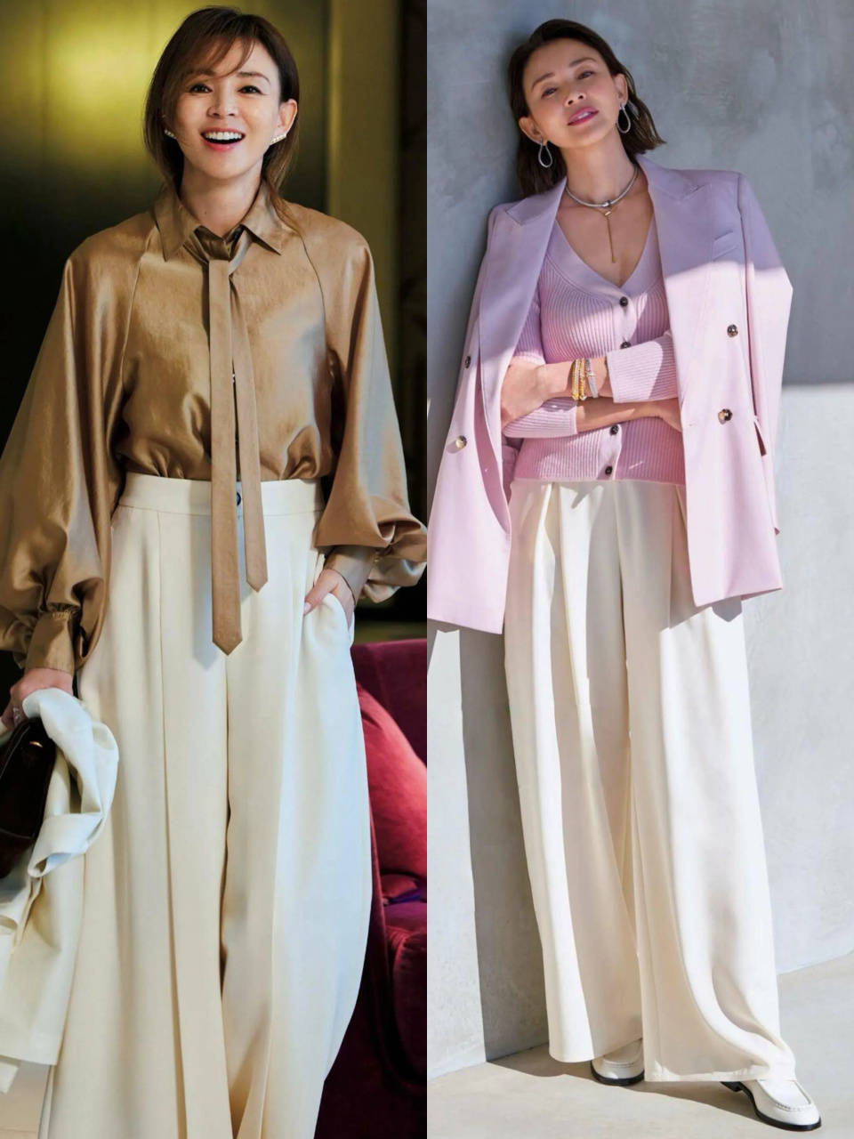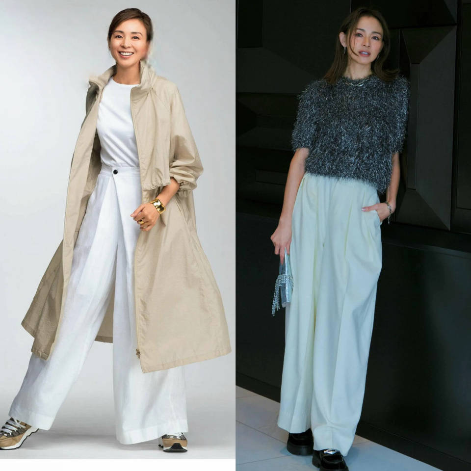 Tips③:垂坠感十足的白色阔腿裤
