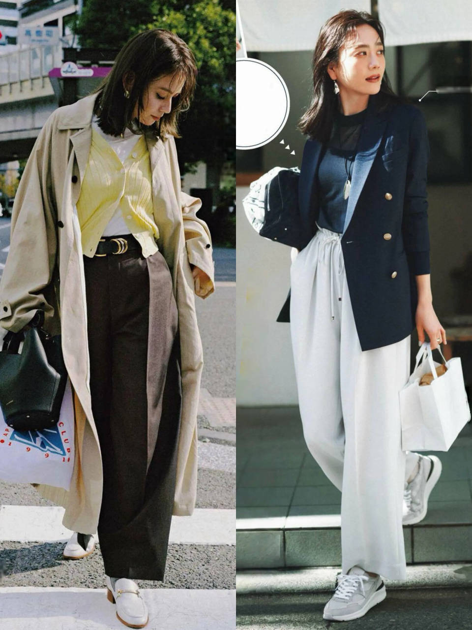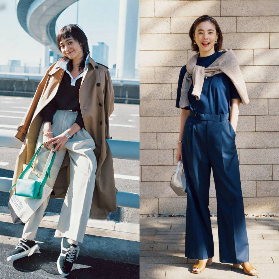 或是选择棕色的西裤配上白色乐福鞋,内搭和黄色针织开衫,叠穿白 T 恤,这样的撞色穿搭能让你更容易拿捏春日的少女气息,甜而不腻。披上卡其色的风衣外套,走起路来自带风,又飒又美。