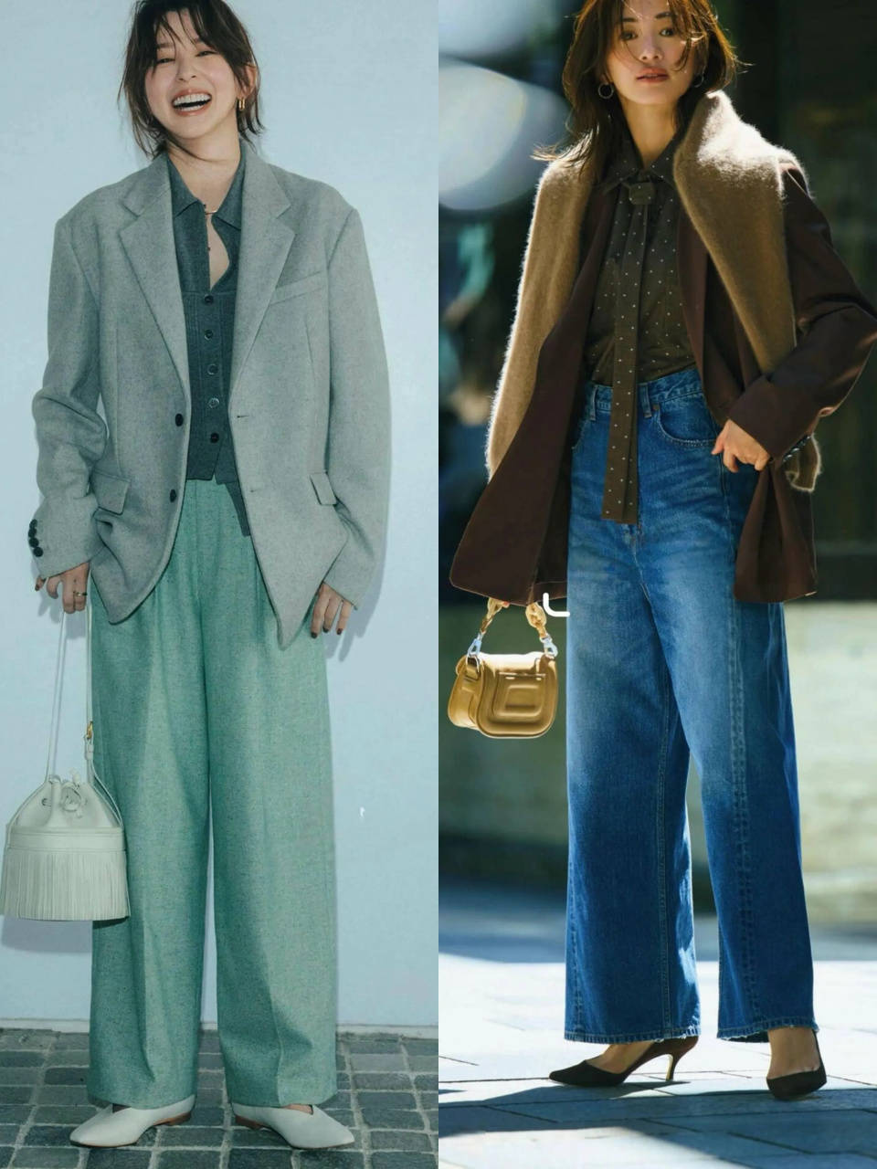 Tips①:浅绿色西裤 VS 蓝色牛仔裤