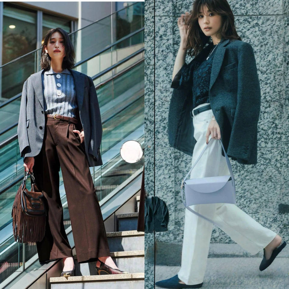 Tips②:美拉德色系西装裤 VS 浅灰色西服套装