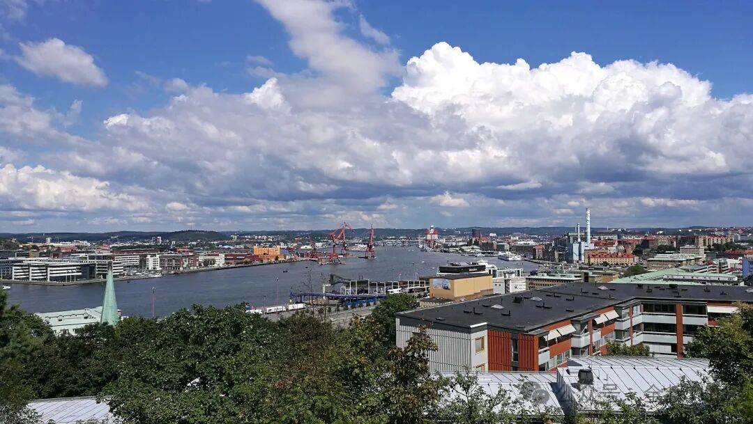 爬上小山顶,俯瞰哥德堡的港口码头,滨海港口城市风景独特。不愧是大航海时代,一直到今天,都很繁忙发达的地方。