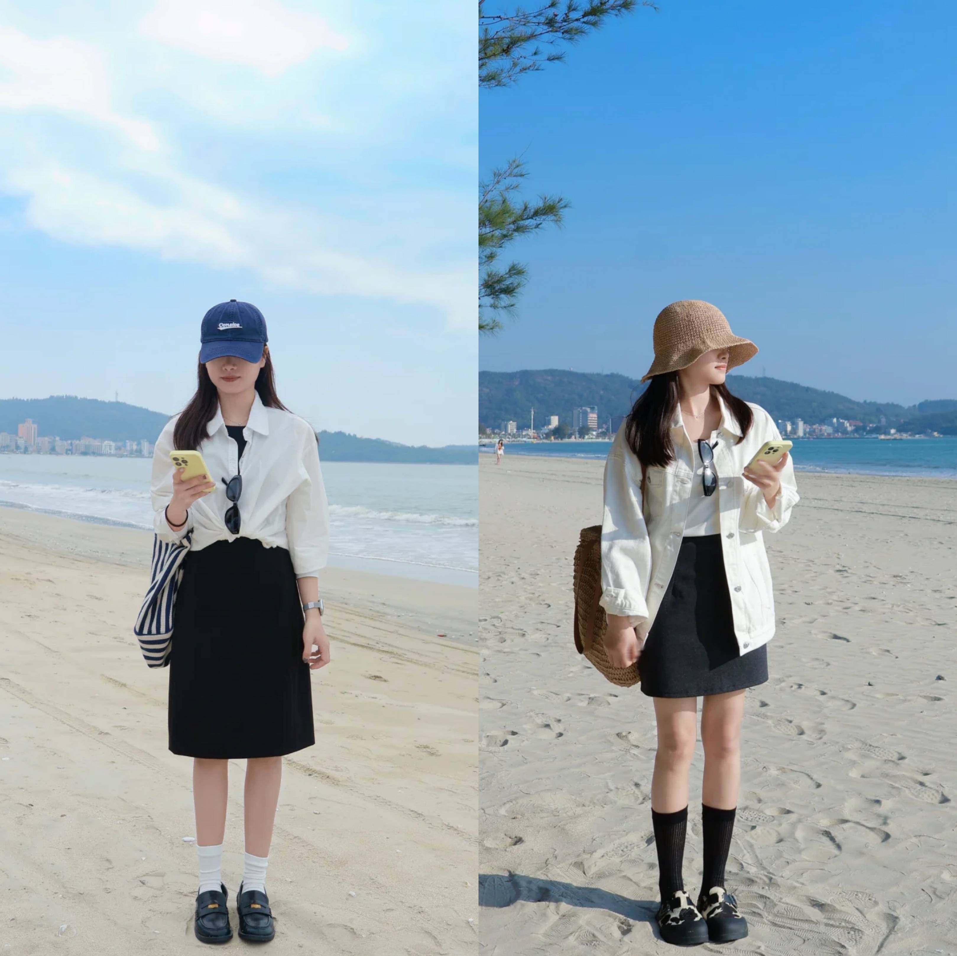 短裙搭配亦是如此,高腰线非常重要,如果是连衣裙,除了选择收腰款,还可以通过外搭单品来打造高腰线,比如套一件白衬衫,将下摆打结,利用衬衫来明示腰线位置,一样有着异曲同工之妙。