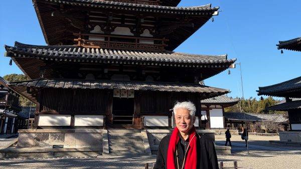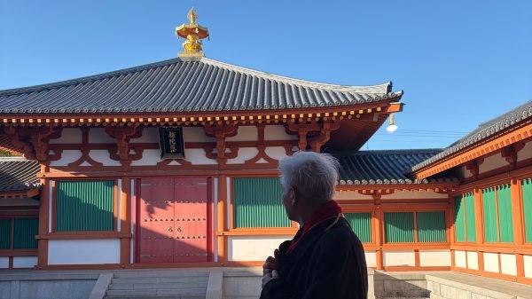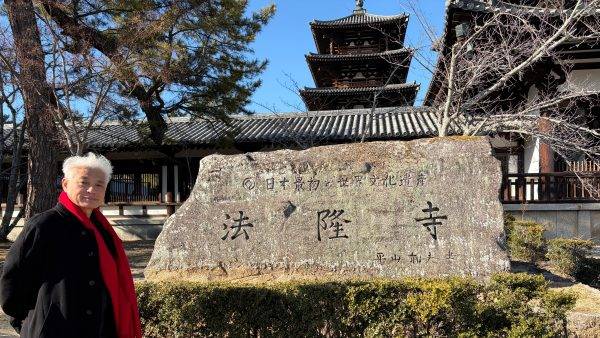 我无意升华拔高,却又不吐不快。日本奈良的法隆寺,堪称东亚文明的一座“避难所”。它守住的,是比中国唐朝更古老、更具精神张力的那个时代——那个战火纷飞却也思想璀璨的时代,那个生灵涂炭却也艺术勃发的时代。它让后人知道,在长安成为万城之城前,中国的审美也曾有过一段如此清冽、如此修长、如此不食人间烟火的时光。那些清瘦的佛像、那些古朴的柱子、那些苍老的木材,它们用沉默的语言告诉每一个来访者:在盛唐的丰满之前,还有一个六朝的清癯;在大唐的绚烂之前,还有一个南北朝的超逸。那不是未成熟的稚嫩,而是一种完全不同的美学选择——一种更接近精神、更远离物质的追求。年近古稀的我,担心不留下这些文字,就会让大脑的记忆宝库持续增加“钝感力”。于是,不顾旅途的疲劳,尽量在电脑上敲打出这些文字。写到这里,我不觉得自己是在寻觅日本千年古都奈良的寺院古迹,而分明是在这片被海风吹拂的土地上,一页页翻开、复习中国古代建筑与灵魂的草稿。那些在故乡已经模糊的笔迹,在这里依然清晰如初;那些在故乡已经遗忘的风骨,在这里依然挺立如昨。这,或许就是文明传播的奇妙之处——有些东西,注定要在远方,才能找到永恒的归宿。