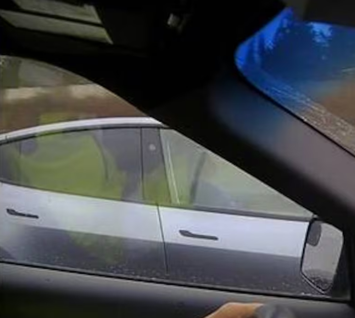 警方称,一名警员驾车行驶至这辆Tesla旁时,发现该车在湿滑的雨天路面行驶过程中,驾驶员“双眼紧闭、双臂交叉”。
