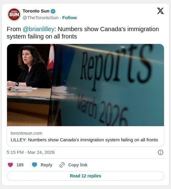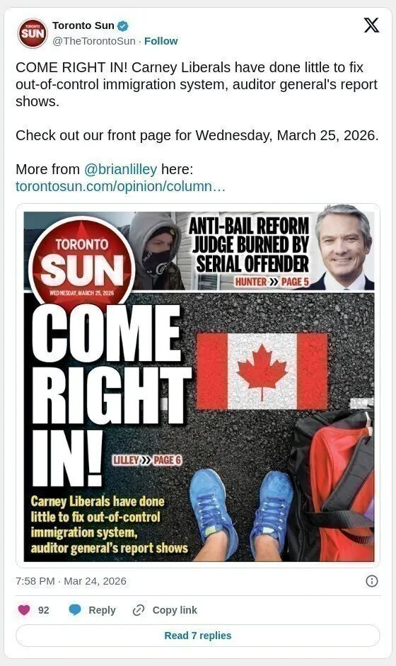 《多伦多星报》专栏文章评论称,过去十年间,自由党政府大幅扩张移民规模,使原本在国际上备受认可的体系出现混乱,国内公众支持度持续下降,国际观感亦由“典范”转为“警示案例”。