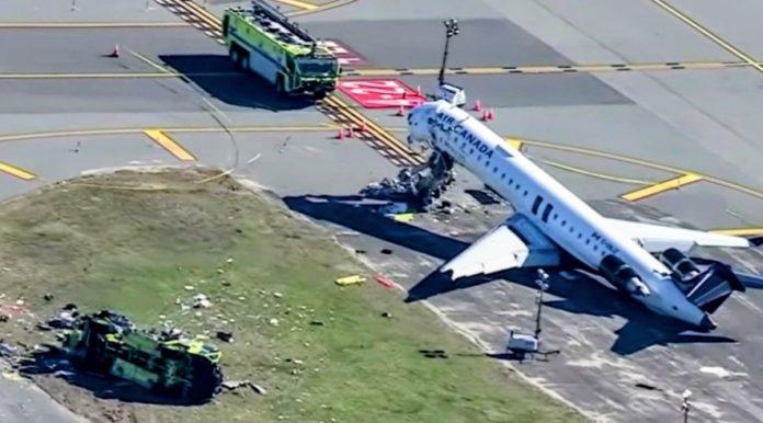周日(22日)晚加航(Air Canada Express)快运客机在纽约拉瓜迪亚机场与消防车相撞,导致2死30多伤的事故。有生还乘客表示,飞机在降落时右摇右摆,着陆即猛烈煞掣;另有乘客感谢两名最终殉职的机师当时尽力减轻伤亡。