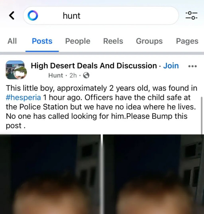 BC省Prince George的皇家骑警指出,近期就有类似案例出现在当地一个“买卖群”中。该帖最初声称一名两岁男童与父母走失,随后在美国两个州的社区群中也出现了几乎相同的内容。