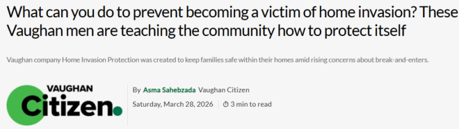 随着大多伦多地区入室抢劫案件频发,尤其是旺市(Vaughan)一带,越来越多居民开始感到不安。在这样的背景下,两位专家——拥有超过40年的武术教学经验的Steve Hyatt和近身格斗专家Frank Visconti——开始教大家如何防范入室抢劫。