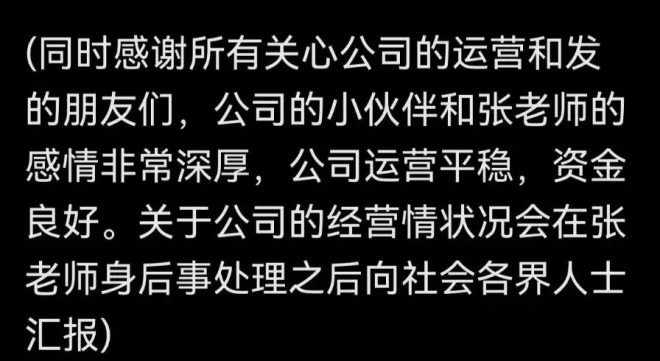 还有网友晒出疑似张老师现任的朋友圈——峰学付老师发文,针对张老师生前的慈善捐赠,到员工福利,再到公司业务,和团队等问题,一一作出了回应,看上去不像普通员工,不过张老师团队也不止一个付老师,至于是不是前任,还有待考证。