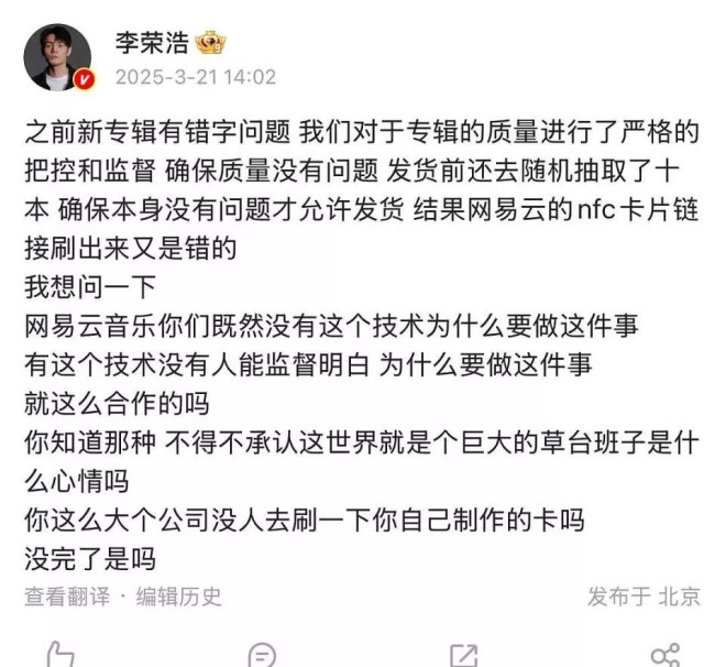 专辑质量出现问题,怼平台是草台班子: