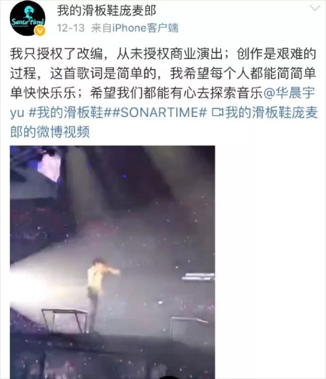 但他并不是主唱,而且这场音乐会是公益性质,艺人无报酬,符合《著作权法》“免费表演可不经授权”的规定。