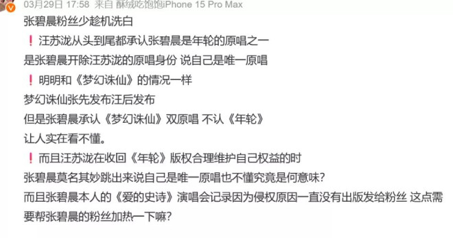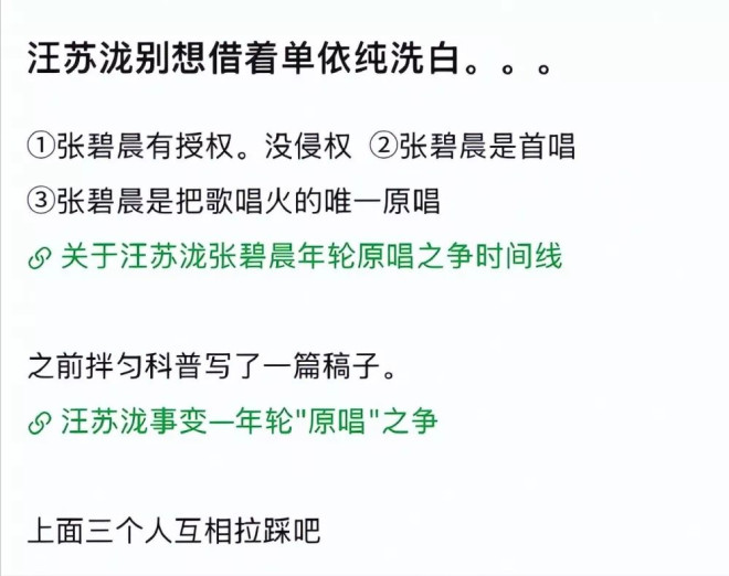 汪苏泷和张碧晨之间关于谁是《年轮》原唱一事也被重提,粉丝互呛是一点不让,到底是谁要洗白我们也看懵了。