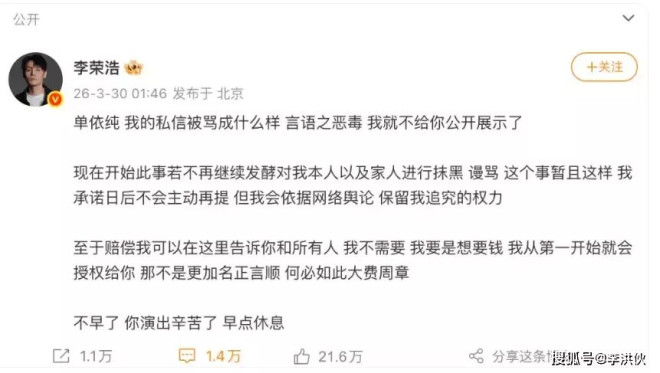 李荣浩直接保留了证据,可不单单是侵权的问题,而是要把私信谩骂这笔新账,和之前的旧账一起算。