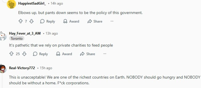 与此同时,越来越多加拿大网友在社交媒体上表达不满与无奈。不少评论将矛头直接指向政府与整体制度,认为问题已经不仅是资源不足,而是涉及政府责任、财富分配以及社会公平的更深层次矛盾。网友们表示: