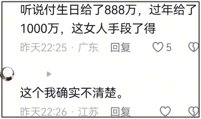 还有人想为付某说好话,结果评论区惊现张老师前女友,“呵呵”两个字怼回去了,这位现任的口碑似乎并不是很好。