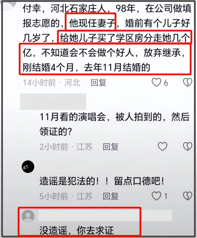 还有现任河北老家的网友爆料,对现任似乎非常了解,在公司负责什么业务都知道,并爆料称两人去年11月结婚的,女方婚前有儿子,还给她儿子买了学区房,这点和前妻好友爆料买房的信息对上了。