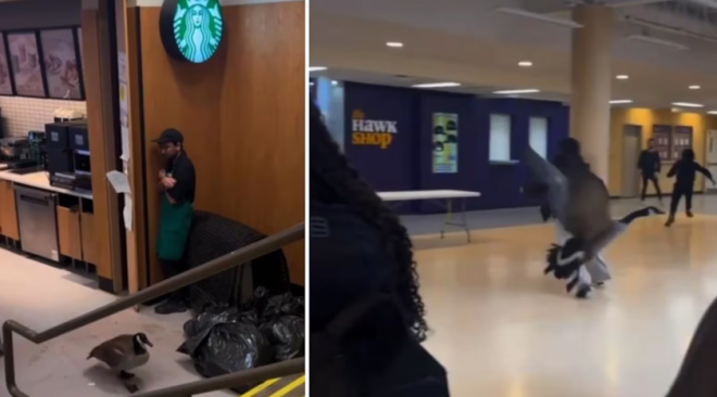 “我们认为,这只鹅是在学生进出大楼时,通过打开的滑动门进入并离开的,”劳里埃大学发言人在一封邮件中表示,并补充说现场没有人员受伤。