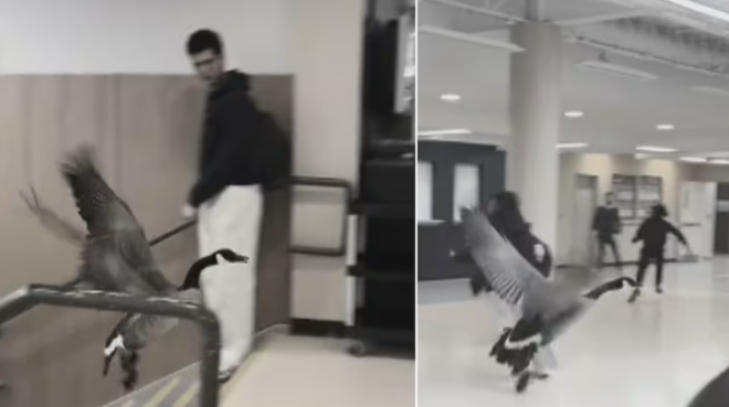 多名目击者拍下视频显示,这只鹅在楼内四处乱飞、不断扑腾,吓得学生们集体“逃命”。相关视频随后在社交媒体上迅速走红。