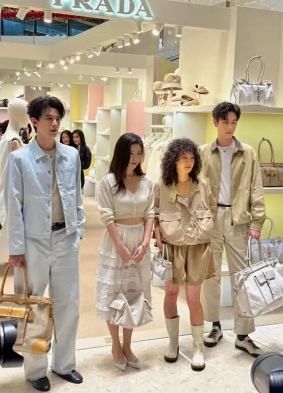 一部爆剧的加成相当高,邓凯凭借《逐玉》出圈后,接到了与Prada的合作,白色的牛仔套装,造型简约清爽。