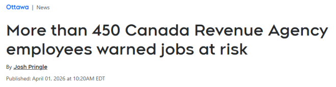 本周,加拿大税务局(CRA)超过450名员工收到了可能面临裁员的通知。