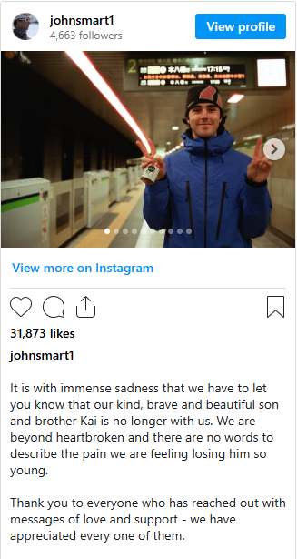 凯的父亲——加拿大滑雪名人堂成员——在凯入院并陷入昏迷几天后,在他的Instagram页面上发布了这一令人心碎的消息。