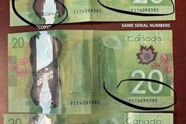 3月24日上午约10点,安省东阿尔戈马分局先后接到两宗报案:先是Blind River的一家金融机构报告发现一张100元假钞。随后有人在Iron Bridge的一家商店使用了4张20元假钞。