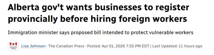 此举旨在更好地监管谁在雇佣临时外籍工人,并保护弱势劳动者,优先保证阿尔伯塔人就业。