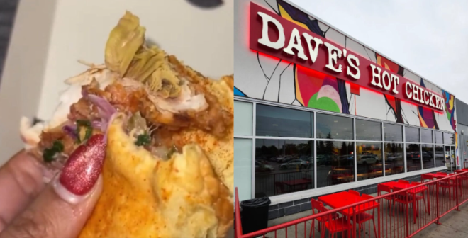 多伦多一位内容创作者近日在社交平台爆料称,她在网红炸鸡连锁店Dave’s Hot Chicken的炸鸡汉堡中,竟咬到一块发绿的鸡肉,当场恶心到想吐,并表示以后再也不会去这家店。
