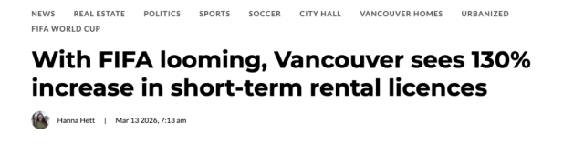 2026 FIFA世界杯将于今年6月中旬至7月上旬在温哥华举办赛事。距离球赛开踢还有三个月,率先热闹起来的,是温哥华的住宿市场。