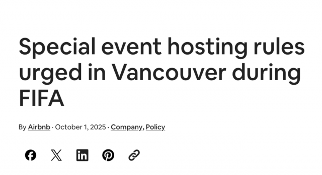 在世界杯官宣主办城市后,Airbnb曾呼吁温哥华特事特办,即在世界杯期间,适当降低短租准入门槛,至少降低申请费用。
