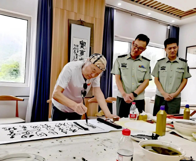 张泽民是北京市顺义区著名的音乐人、书法家。2023年8月,他与顺义区的魏宗安、刘凤池等多位书法家,去武警某部军营开展文化艺术交流活动。