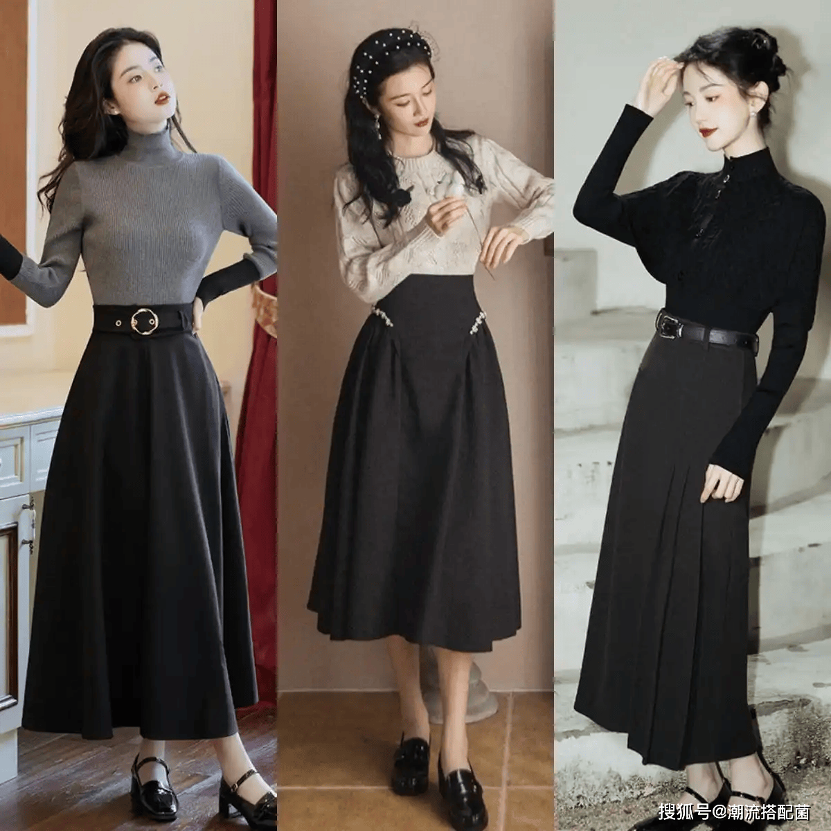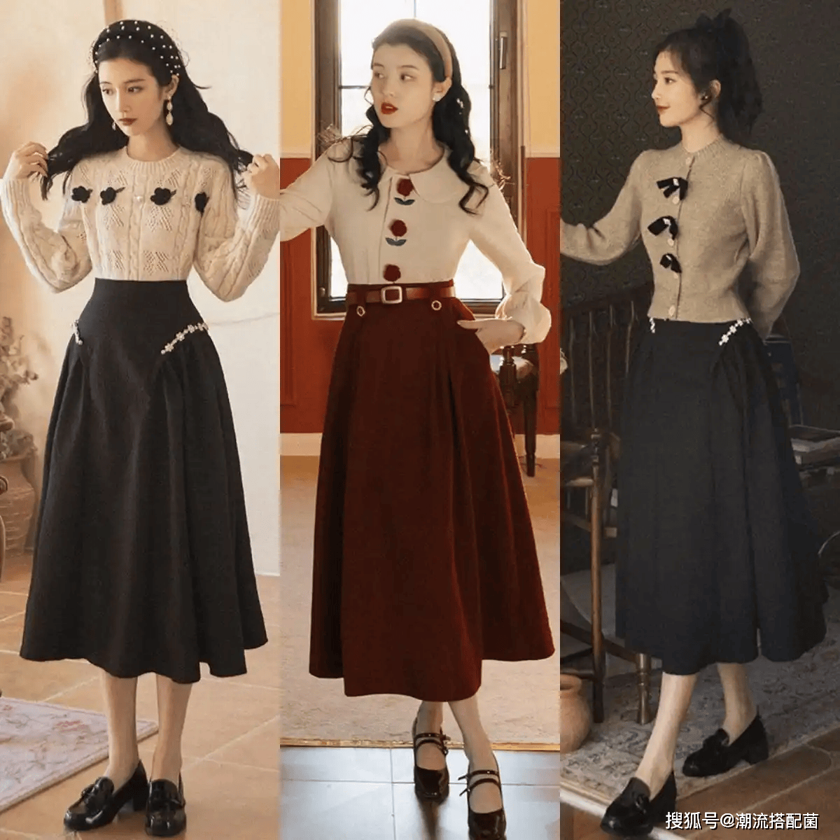 赫本裙+低跟乐福鞋