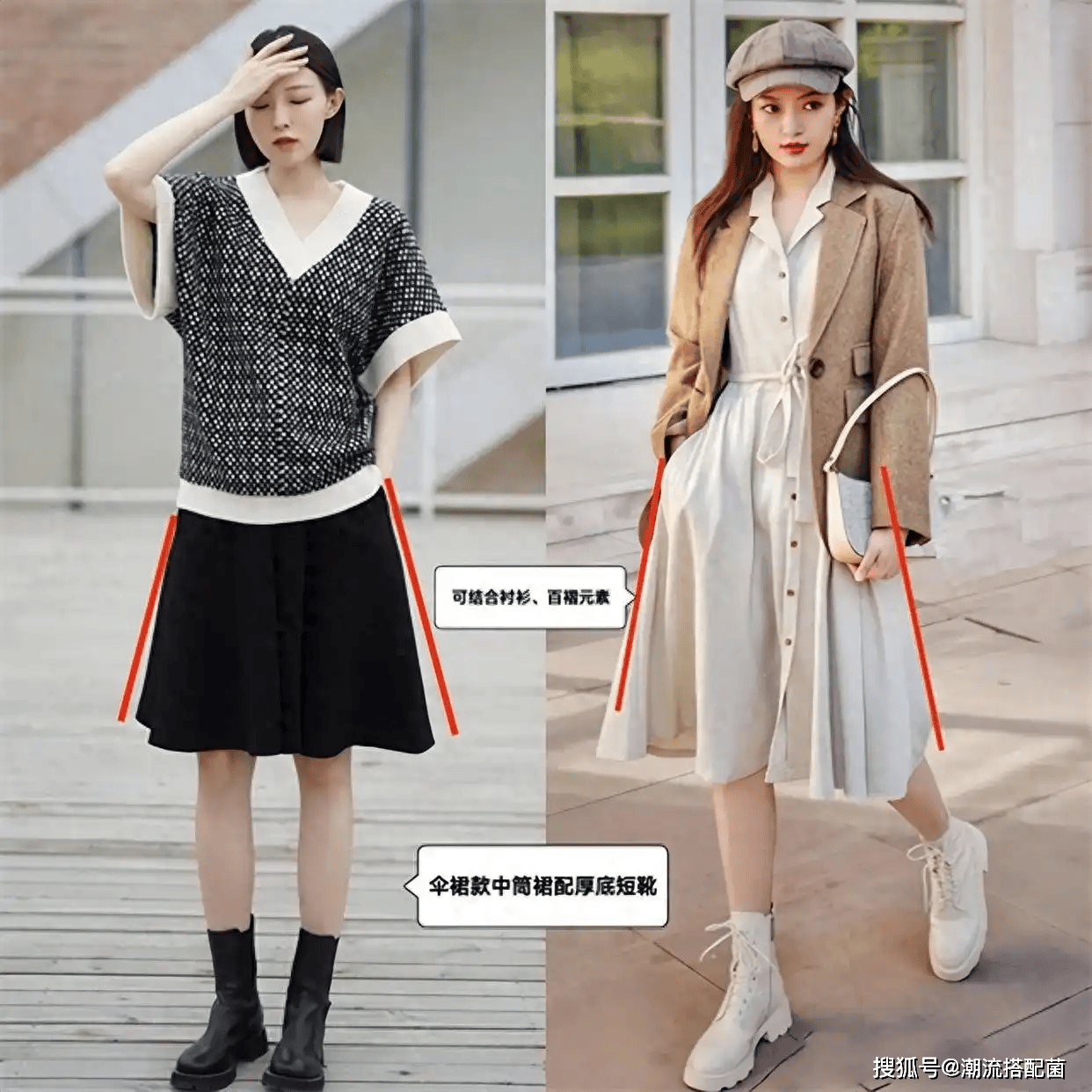 赫本裙+低跟短靴