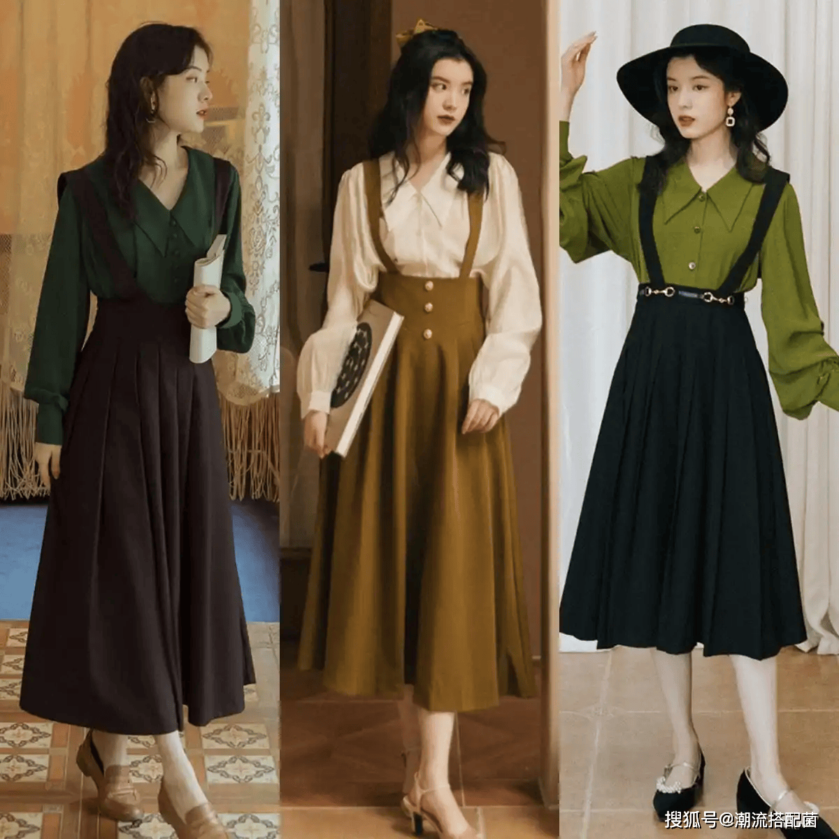 赫本裙+低跟奶奶鞋