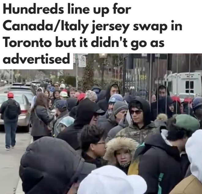 为了吸引更多球迷,加拿大足协推出了一个活动:意大利球迷可以用自己的球衣换一件加拿大队球衣。