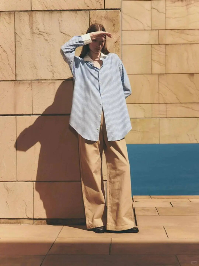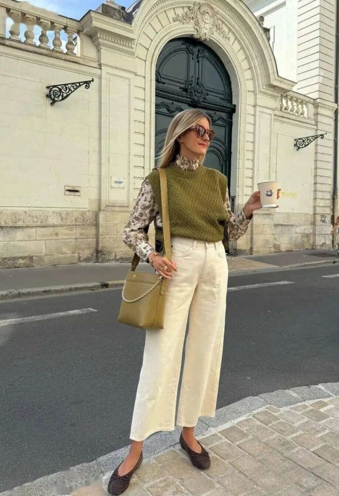 阔腿裤的洒脱舒展,搭配平底鞋的轻盈从容,完美诠释 “不着急” 的生活姿态,没有束缚感,自在又显瘦。